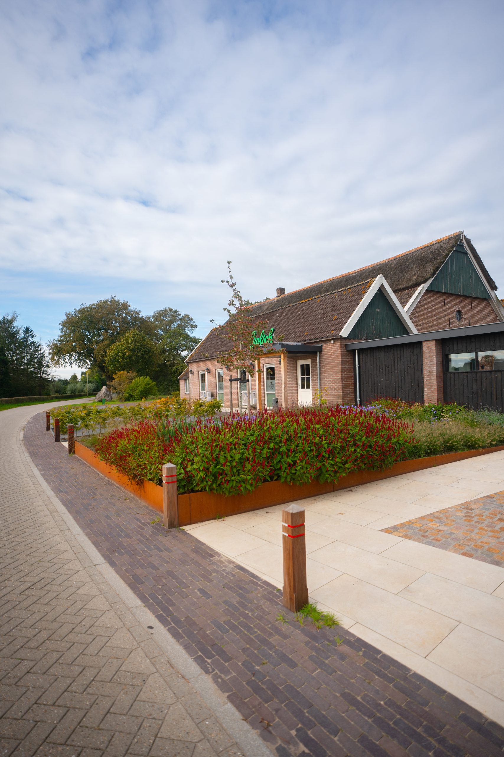 De eigenaar koos ervoor om de bestaande gebouwen op te knappen én nieuwe functies toe te voegen. Alles passend binnen het landelijke karakter van de plek.